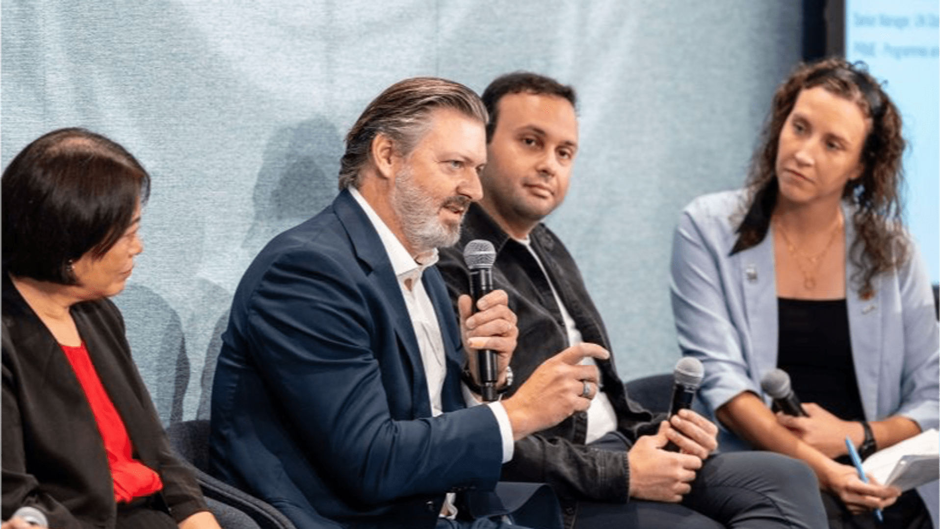 New York City, United States. September 26th, 2025. Marco Marchesi (center, holding microphone, FyrstGen Board Member) participating in the UN Global Compact Hub panel: “The Future of Business Education: A Turning Point for Leadership and Society”.