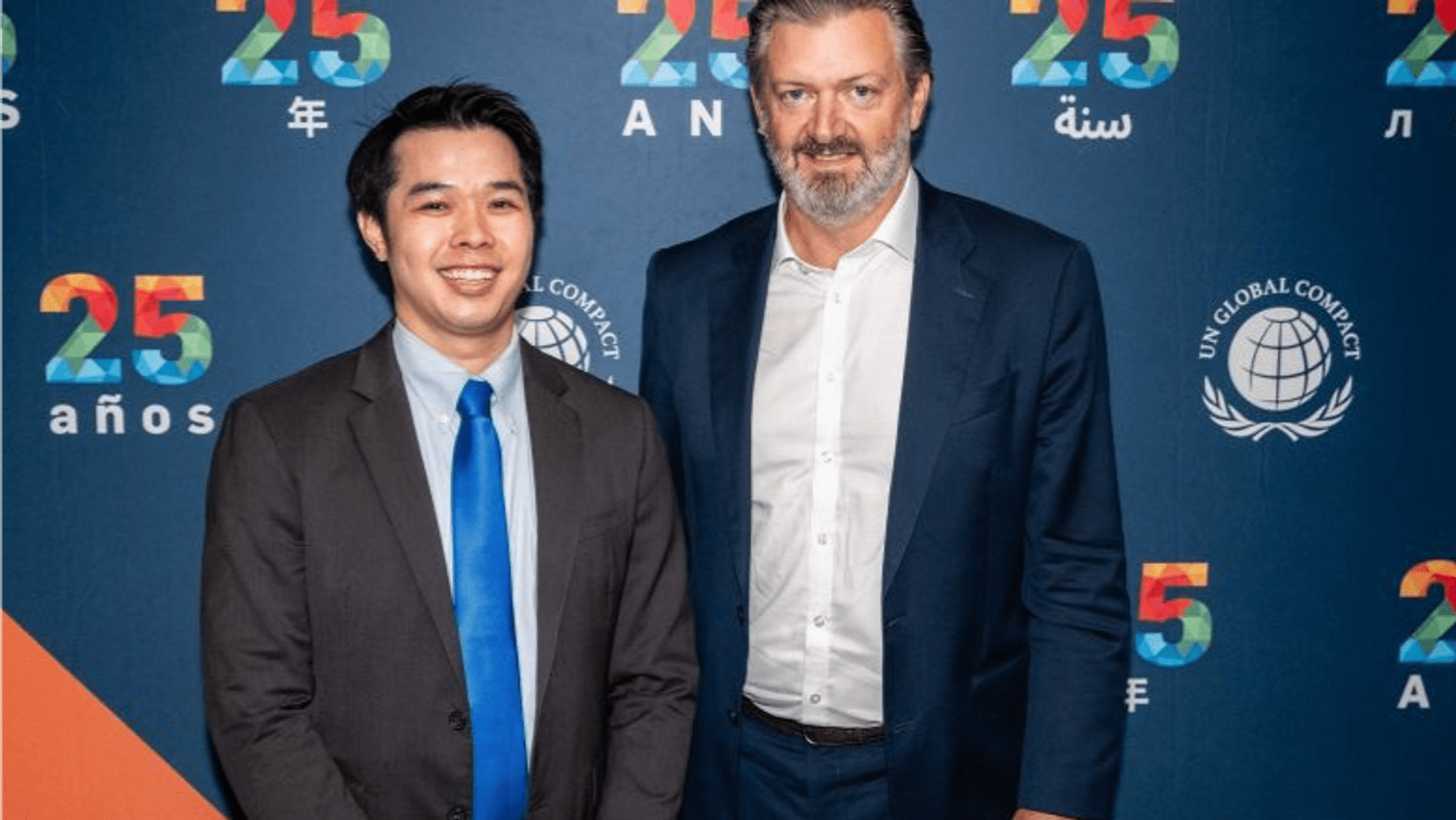 New York City, United States. September 26th, 2025. Hai Tiet (left, Senior Manager for United Nations Global Compact’s PRME) and Marco Marchesi (right, FyrstGen Board Member).